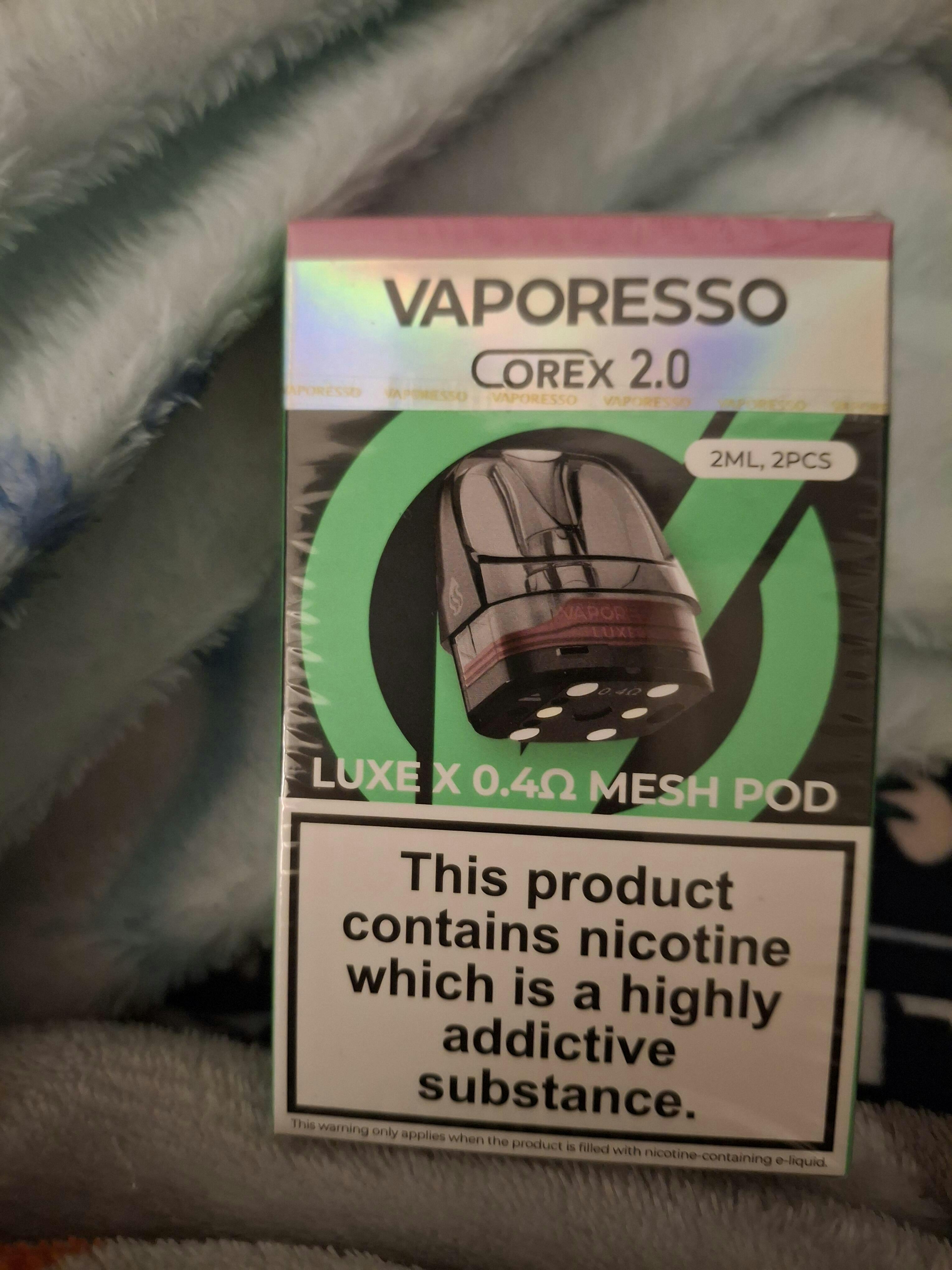 2ml pods with COREX 2.0 mesh coil technology for Vaporesso Luxe X2 kits, available in 0.3ohm–0.8ohm options for DTL (direct-to-lung), RDL (restricted direct-to-lung) and MTL (mouth-to-lung) vaping.